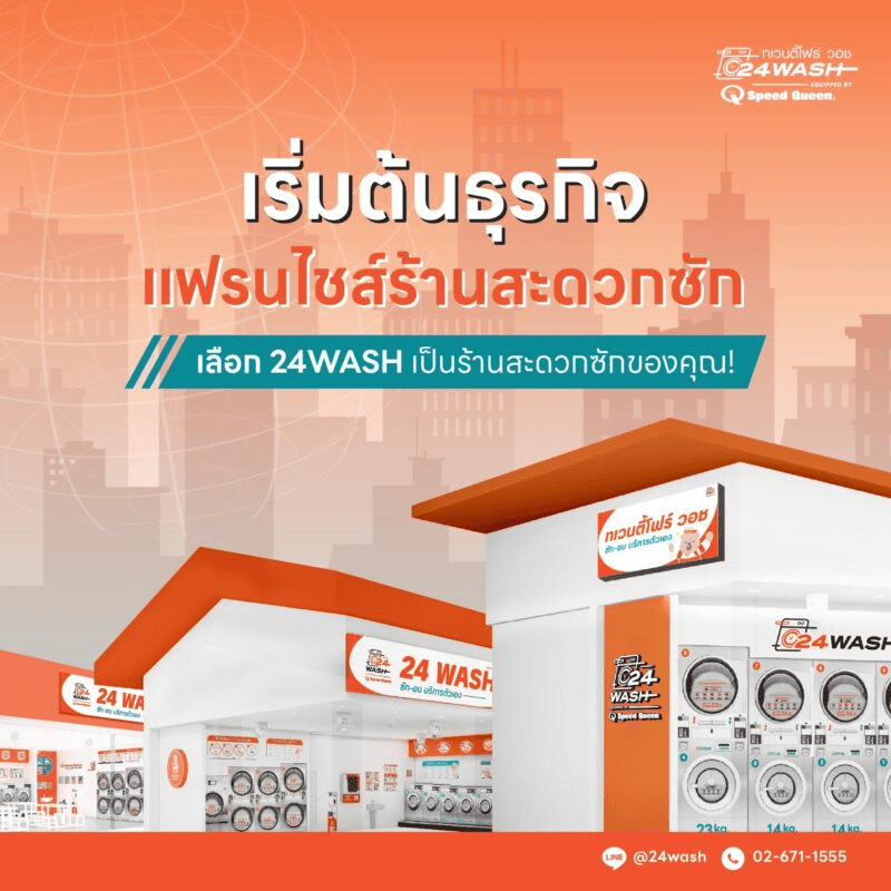 24WASH ติดอันดับ 1 ใน 5 ธุรกิจแฟรนไชส์ร้านสะดวกซักเจ้าใหญ่ในประเทศไทยที่มียอดขายสูงสุดในปี 2566 ความสำเร็จที่ไม่ควรพลาด